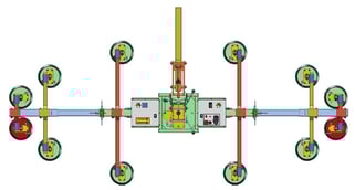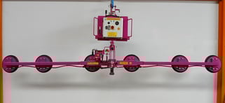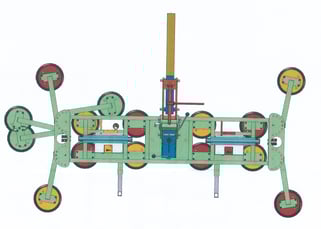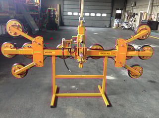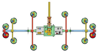Deze 8 nappen glaszuiger is zeer geschikt voor het hijsen van grote glasplaten en ook voor liggend glas.