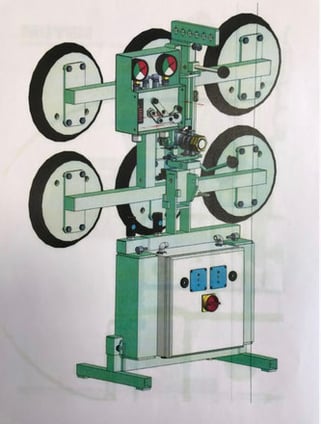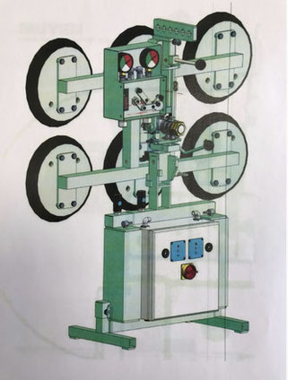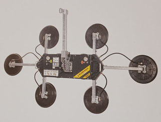 de zuiger wordt opgehangen aan een bouwkraan of autolaadkraan. Hij is uitgerust met meerder nappen, welke kruislings zijn verdeeld in twee systemen over de glasplaat. De zuiger werkt op accu me signaal en is voorzien van twee vacuümpompen, twee vacuümtanks en twee batterijen.