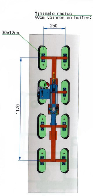 Ook zijn alle nappen in hoogte en diepte te verstellen voor het aanzuigen van kozijnen met verschillende maten kozijnen