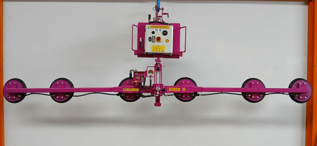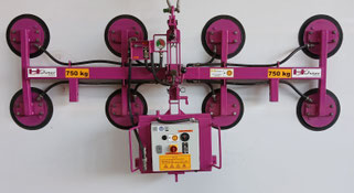 Deze 8 nappen glaszuiger is zeer geschikt voor het hijsen van grote glasplaten en ook voor liggend glas.