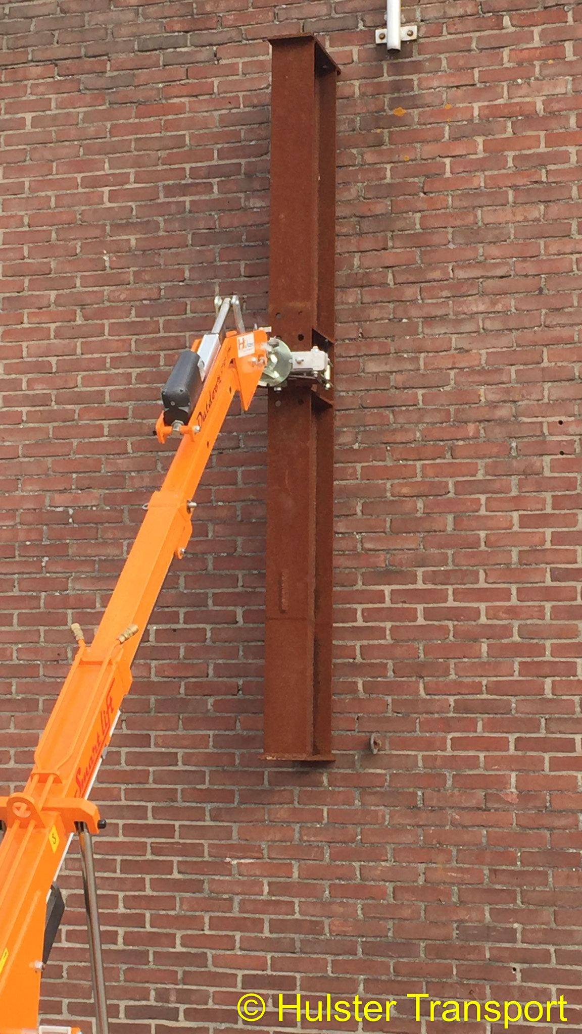 Door de vele hulpmiddelen die we er voor hebben is het ook mogelijk om er stalen balken mee op te pakken en te plaatsen.