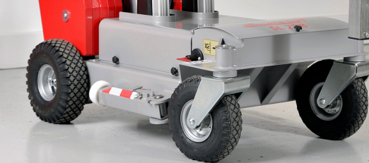 Een van deze Smartliften is voorzien van nonmarking banden voor het rijden binnen op een streep gevoelige vloer..